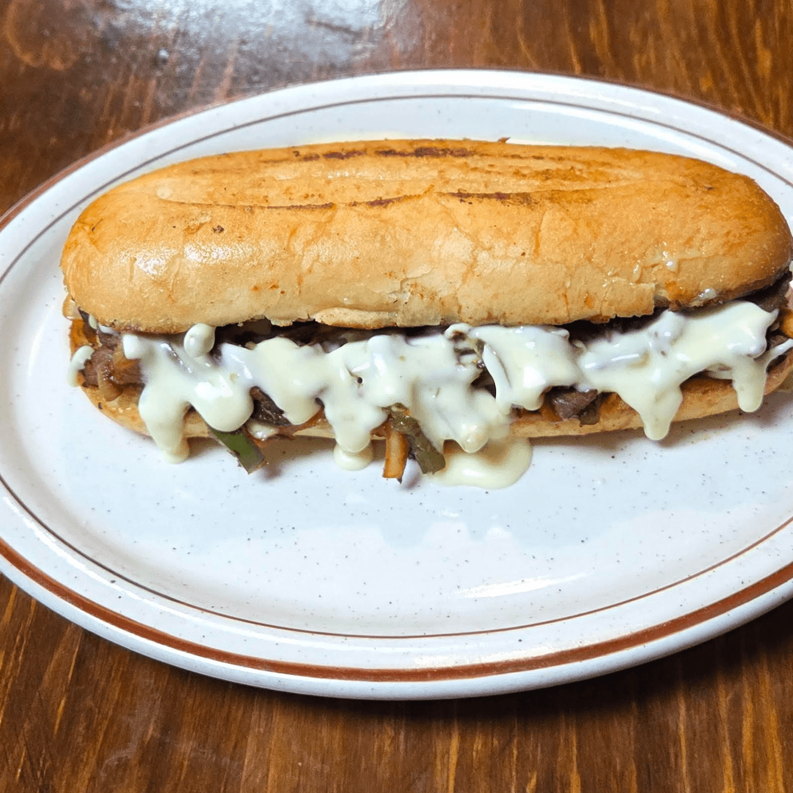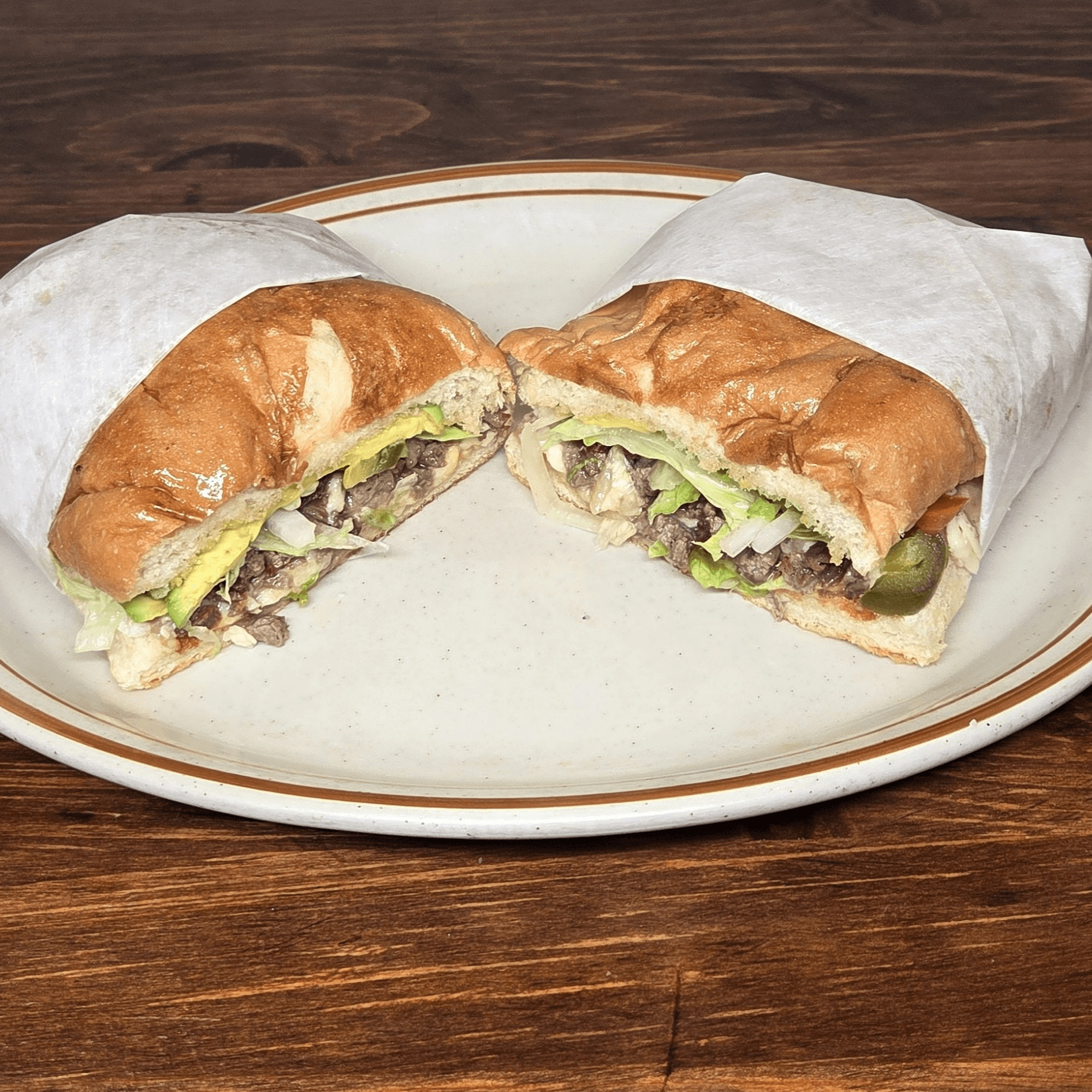 Try our NEW Philly Cheese Steak sandwich! Includes one side of your choice: Mexican Rice, Refried Beans, French Fries, or Salad.