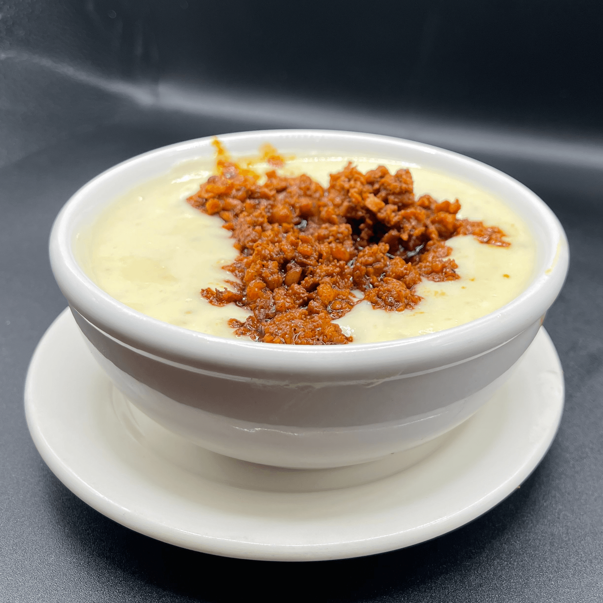 Grilled chicken, steak, and shrimp over a bed of Mexican rice, topped with our signature cheese sauce.