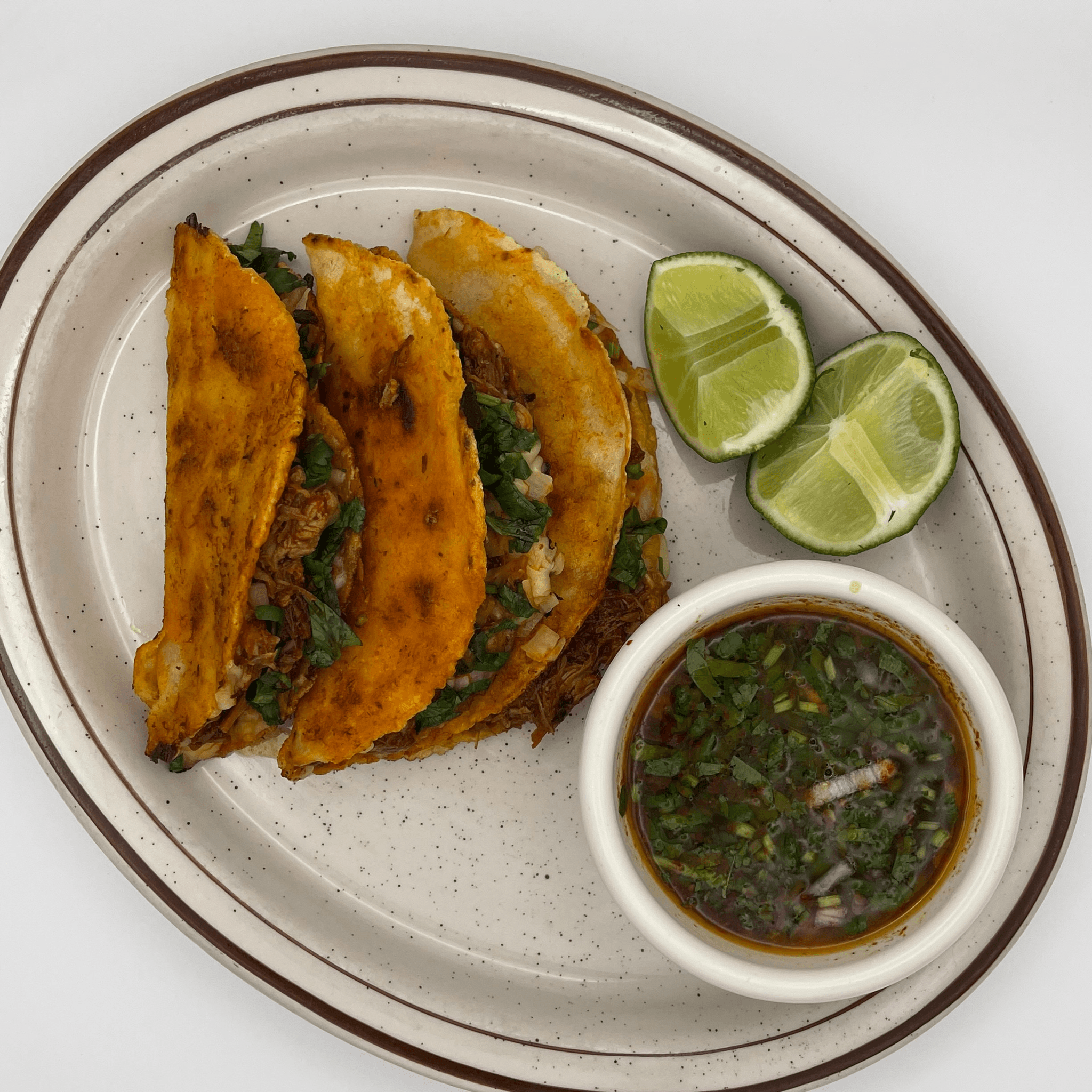 Served on fresh handmade corn tortillas, picadillo(shredded beef and pork). Served with cilantros, onions and shredded cheese.