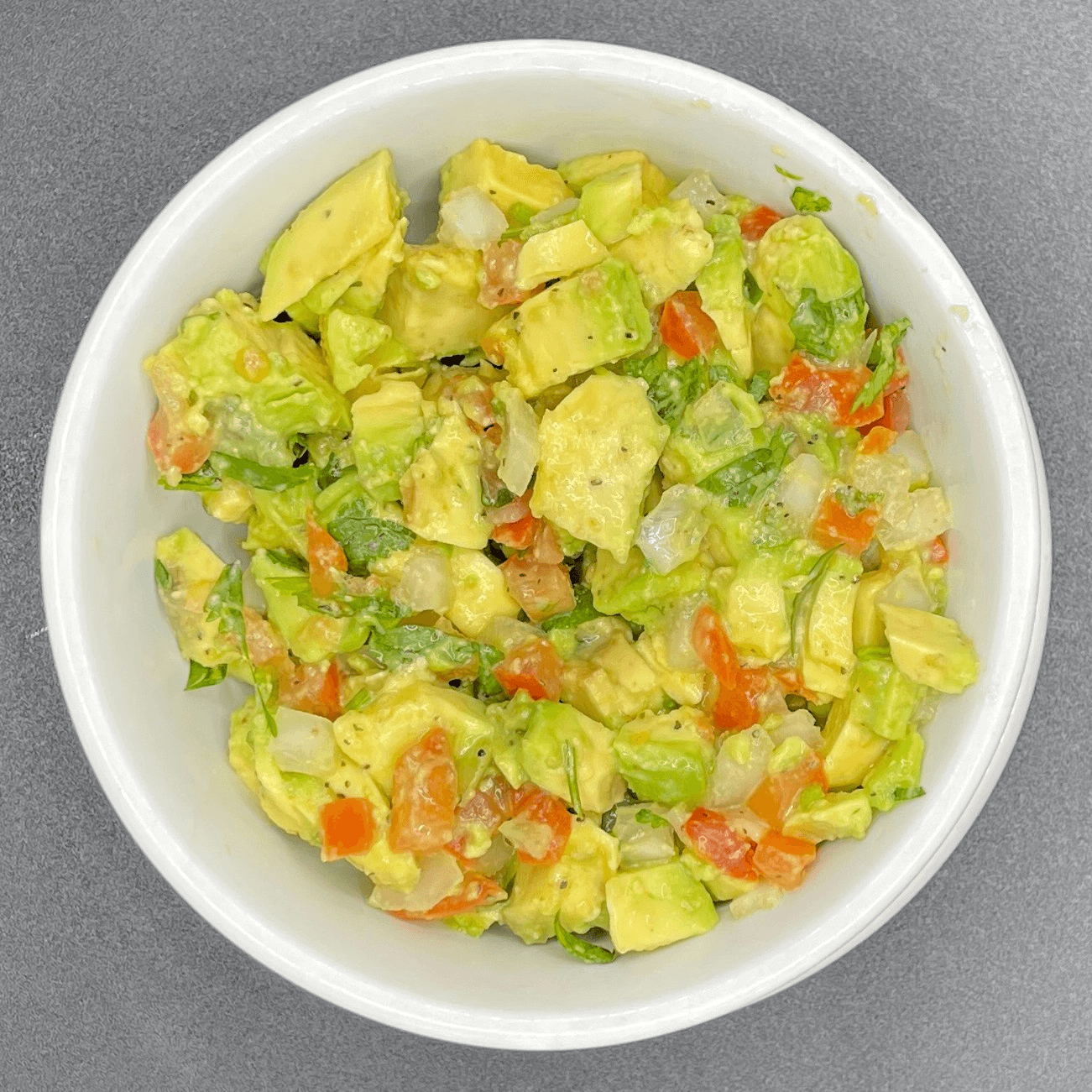Fresh chopped avocado, with tomatoes, onions, and lime.