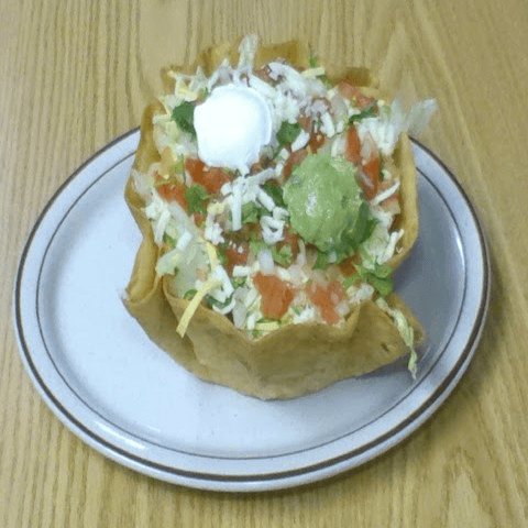 This Salad is the Vaquero's Family's personal favorite! Your Fresh garden salad will be generously topped with your choice of one Fajita meat (steak, Chicken strips or Shrimp), and garnished with Mushrooms, avocado and tomatoes.