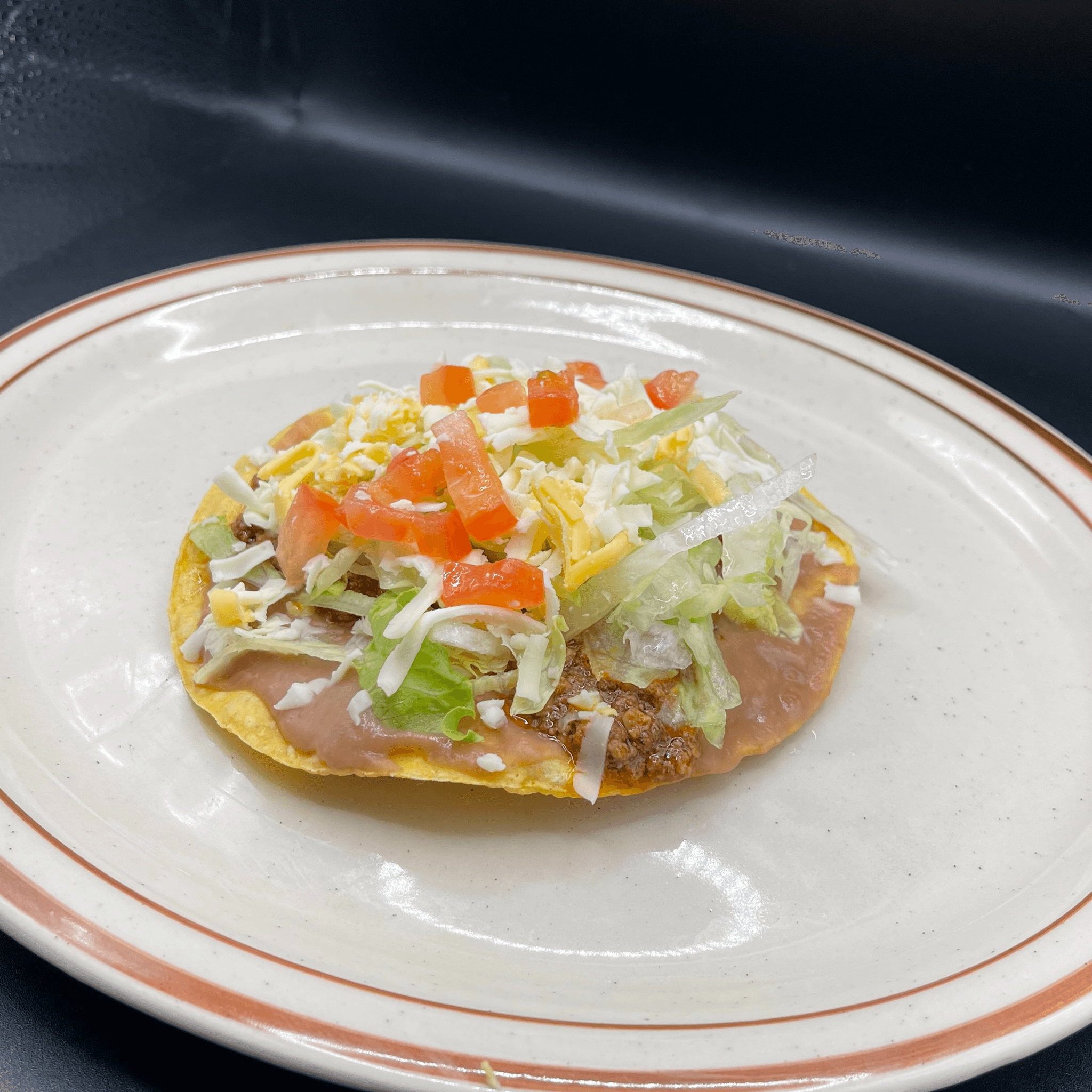 Our Traditional tostadas are made with a crispy corn tortilla shell topped with refried beans, fresh lettuce, cheese, tomatoes and your choice of ground beef, chicken or picadillo (Shredded beef and Pork).