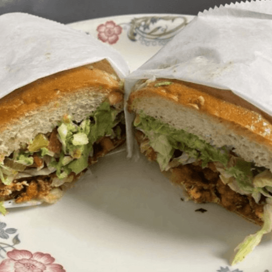 Try our NEW Philly Cheese Chicken sandwich! Includes one side of your choice: Mexican Rice, Refried Beans, French Fries, or Salad.