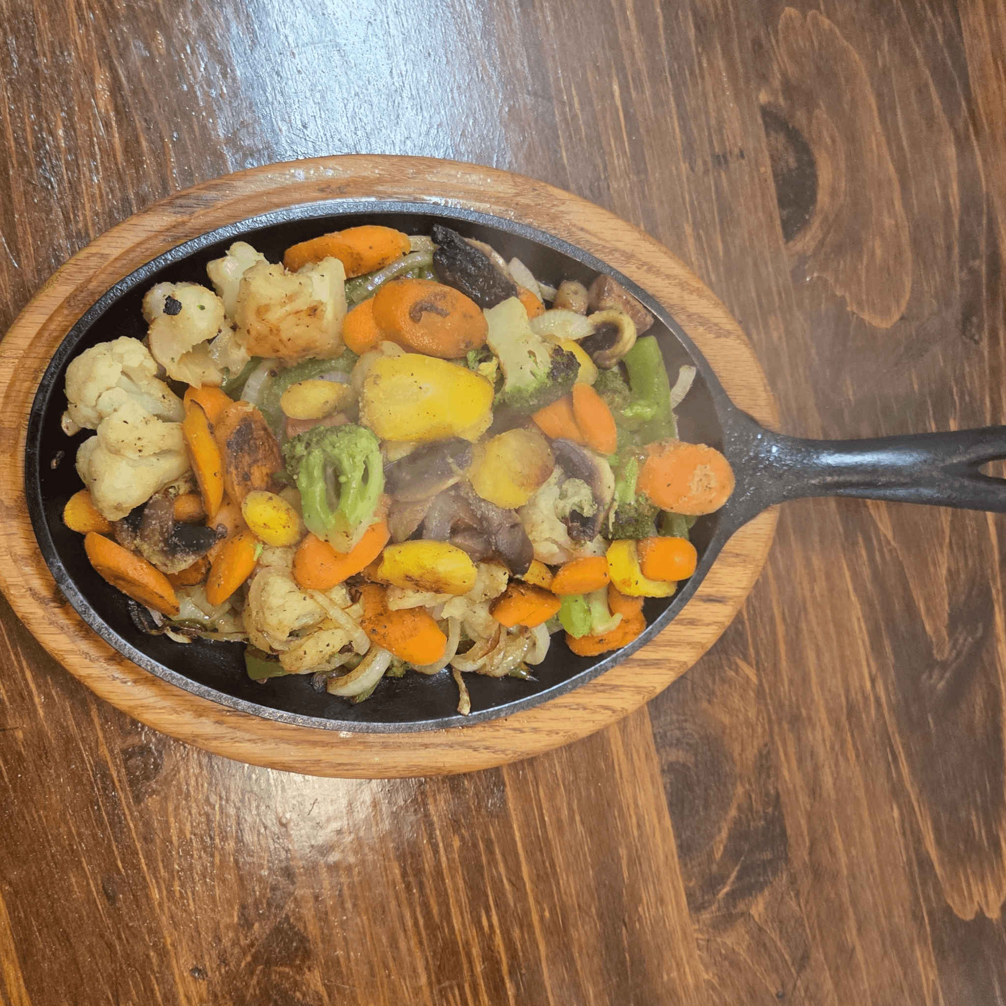 A mix of Vegetables selected and prepared by our chef, sauteed together on a hot, sizzling plate. Served with rice and beans.